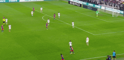 第45+4分钟,佩德里送出直塞,莱万挑射破门,巴萨2-1再度反超!