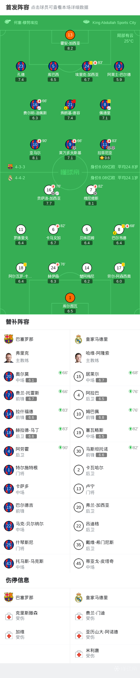 第76分钟,皇马换人调整,姆巴佩、阿拉巴替补登场。