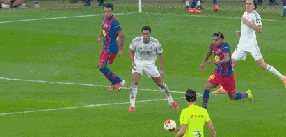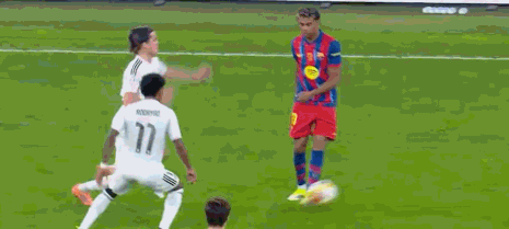 第30分钟,亚马尔突破被断,随后对贝林厄姆犯规。