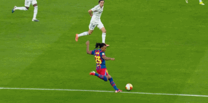 第34分钟,亚马尔妙传,拉菲尼亚错失良机。